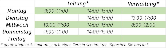 Für Fragen rund um Ihren Betreuungsvertrag, zur Abbuchung und Möglichkeiten zur Moduländerung helfen Ihnen unsere Verwaltungskraft Frau Adams-Möller und unsere Leitung Frau Vaupel gerne weiter.