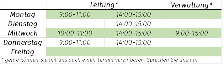 Dienstags zwischen 10:30 und 12:00 Uhr findet unsere Teamsitzung statt. Daher sind wir in diesem Zeitraum weder per E-Mail noch telefonisch erreichbar.